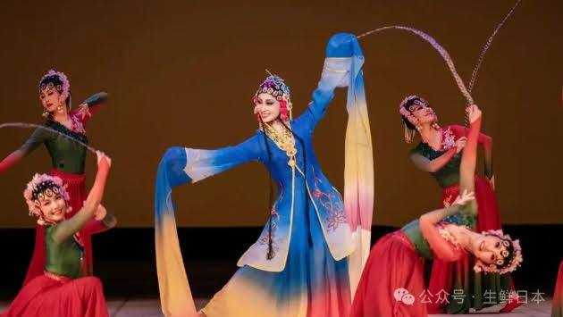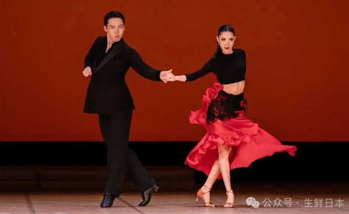 ⽇本中国朝鮮族芸術協会による朝鮮族舞踊『流光炫舞』が鮮やかに登場し、朝鮮族の祝祭 ⽇の喜び溢れる情景を⾒事に表現した。 ⽇中舞蹈家連合会の美しいダンサーたちによる蒙古舞踊『草原情歌』は、飄逸で情深いものだった。同連合会の創設者で著名な舞蹈家である張屹先⽣のリードダンスは、舞踊全体 に正確で本格的な⺠族⾊を与え、蒙古族の豪放な激情と⾺乳酒のような⽢く柔らかな情感を⾒事に表現し、観客に蒙古草原の⼥性の美と魅⼒を舞台上で堪能させた。 熱く情熱的な⾳楽と共に、⼀組の⽇本の若者による競技ラテンダンスのパフォーマンス は、会場の⽇中両国の観客の⽬を奪った。豪快で熱烈なラテンダンスは⼈々の⼼拍数を上 げ、激情をかき⽴て、ある⽇本の年配観客は思わず「素晴らしい!」と叫んだ。第⼀部最後の⽇本側からの演⽬、舞踊『⾵翎花旦』は、中国古典舞踊と国宝京劇の古典的 な美の融合を完璧に表現した。特に著名な舞蹈家、張屹⽒のソロダンスは、神業の如き舞、柔らかく美しい旋回、鳳凰が⽻を広げるような上下に翻る⻑袖の舞は、⽬を⾒張るものがあり、⼈々はただただ驚嘆するほかなかった。まさに⽇本の舞踊界におけるトップレ ベルの藝術家と呼ぶにふさわしい。